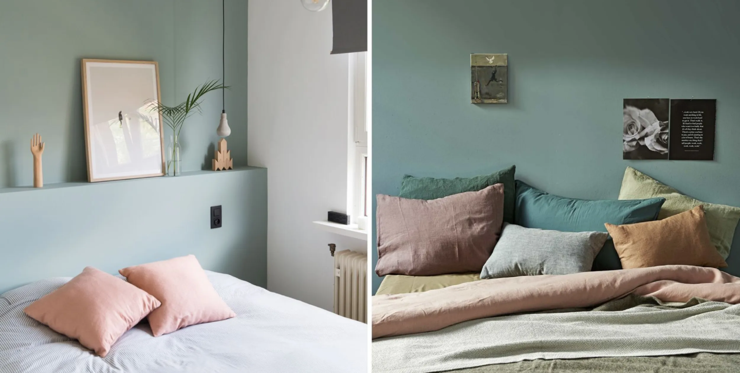 Det pratas ofta om att blått och grönt är lugnande och därför passar bra i sovrum, till skillnad från ”sociala kulörer” som rött, orange och gult som istället piggar upp och hör hemma i sociala rum. Men alla är vi olika, och trivs man i färgstarka miljöer så sover man alldeles säkert bra i dem också. Följ din intuition och satsa på starka kulörer om det är det du vill ha, genom att bryta dina valda kulörer i svart blir de lite mer dämpade om du känner dig osäker.