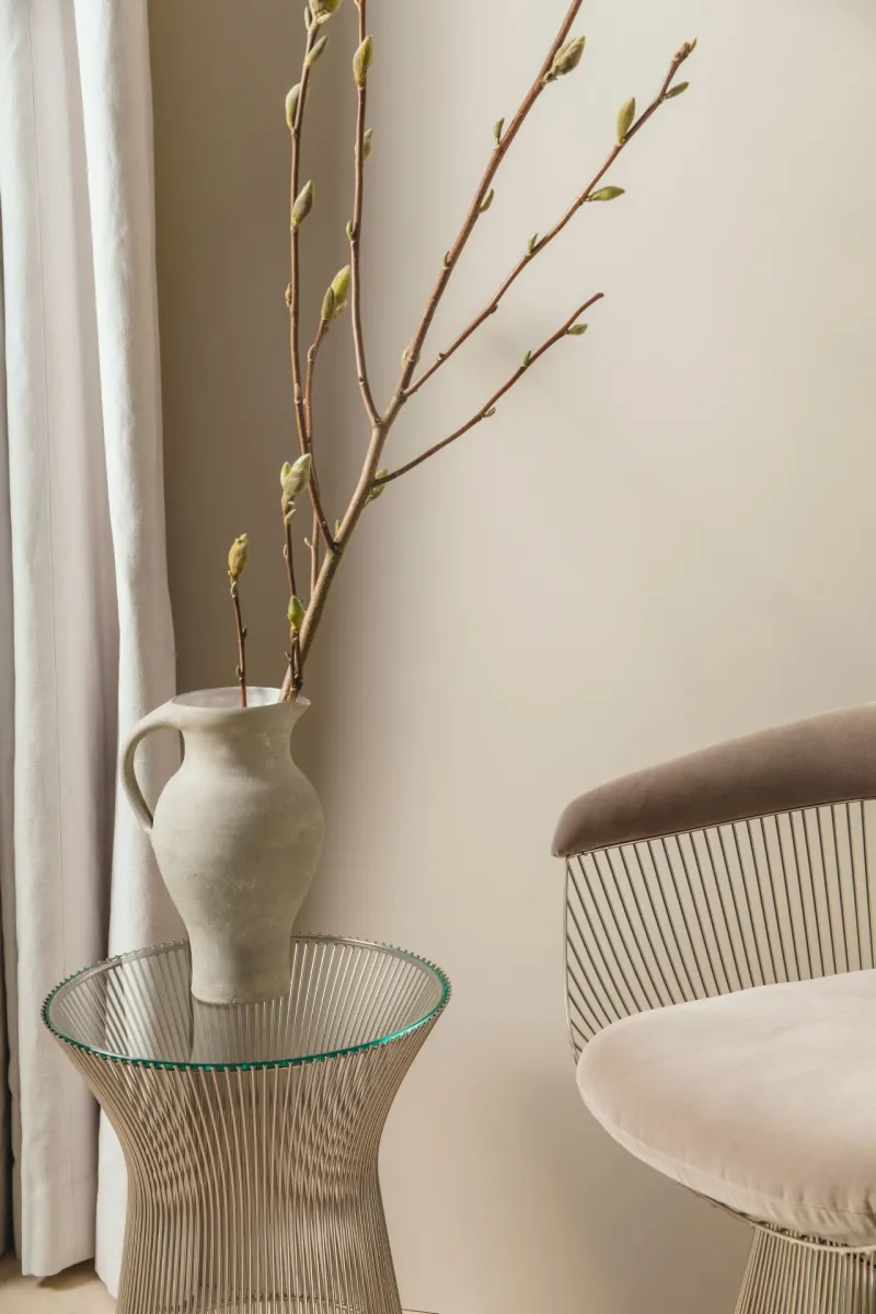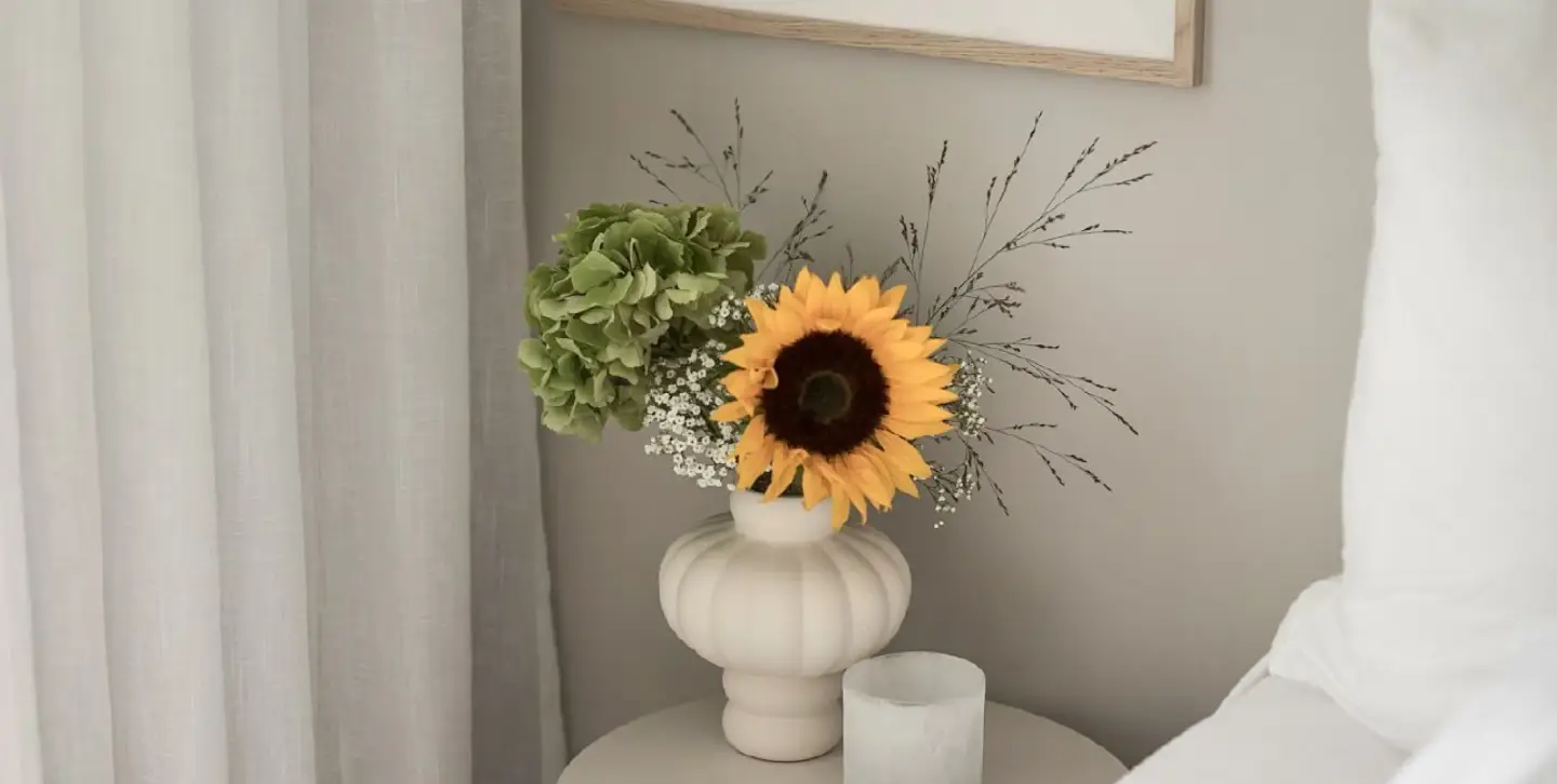 Bryt av en neutral greige vägg med gula accenter som en uppiggande solros