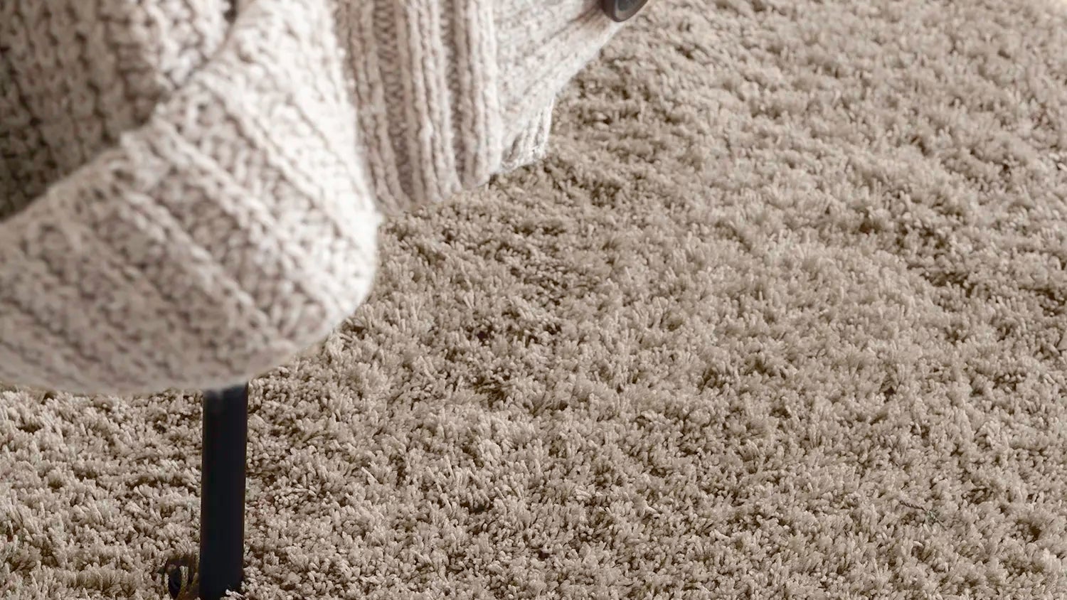 En stor fluffig textilmatta i sovrummet håller stilen och ger samtidigt en värme till rummet. Dessutom är den skön att sätta fötterna på när du kliver ur sängen.