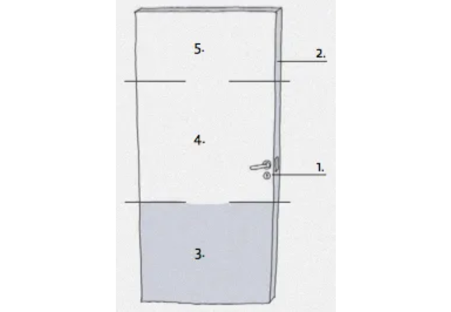 5:5 Sist målar du sidorna på dörren. Låt färgen torka ett dygn. Måla sedan en gång till enligt samma princip som ovan.