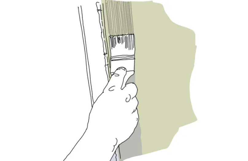 Måla med pensel intill dörrfoder och eldosor där du inte kommer åt med rollern.