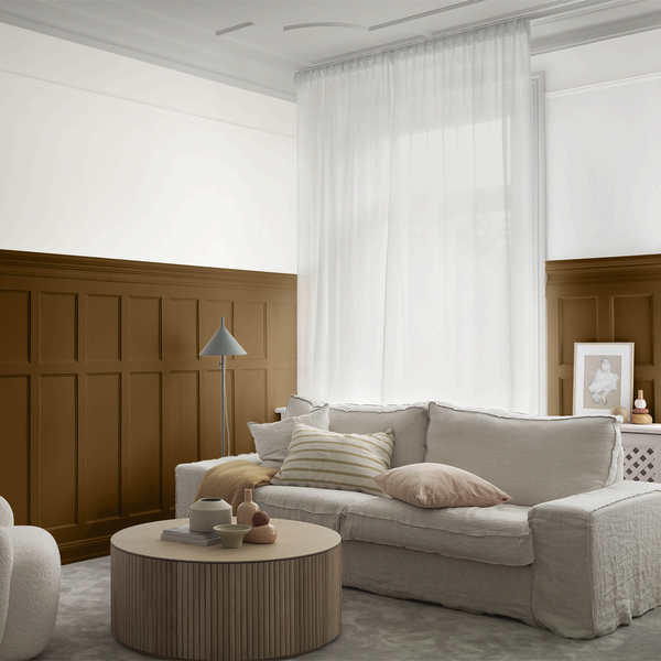 Brown Hen är en mättad, mörkbrun nyans som skapar en varm och inbjudande atmosfär: en känsla av jordnära harmoni. Passar fint med varmvita nyanser, som till exempel den gräddiga Emilia White.