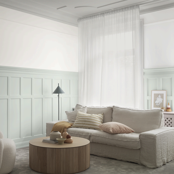 Skogsstjärna är en kall, ljus och svagt blekgrön nyans som förmedlar en subtil fräschör. Den är en fantastisk bas och harmoniserar väl med naturliga material och andra kalla gröna kulörer. Med sina naturnära toner skapar den en lugn och harmonisk känsla.