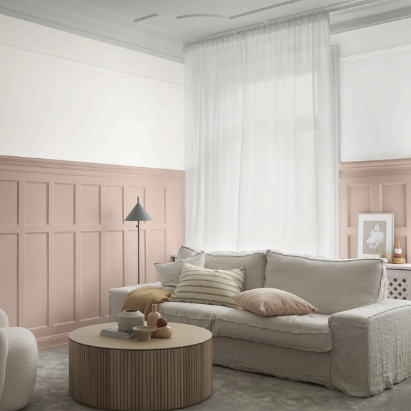 Dahlia är en mörkare beigerosa som upplevs närmast gyllene. Den är varm och klassisk och skapar en trevlig, ombonad och mjuk känsla i ett rum. Fin till varmare vita såsom Emilia White eller Sockervadd.