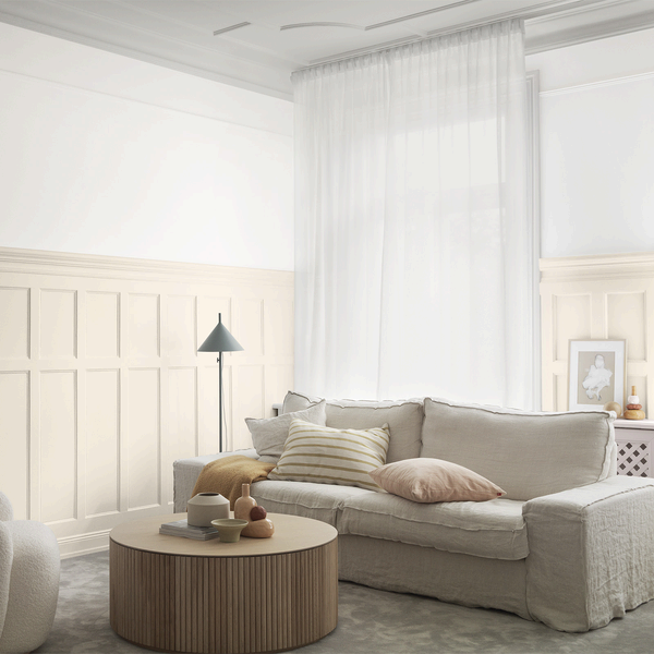 Som en skir sommargardin som böljar vid ett öppet fönster; Bellini är en ljust beige – närmast vit – kulör med en varm underton. Den ger ett sobert och klassiskt intryck, fungerar fint som bas och passar bra ihop med andra varma och varmvita kulörer. Bellini är en del av kulörkollektionen Alcro X Emilia Ilke.