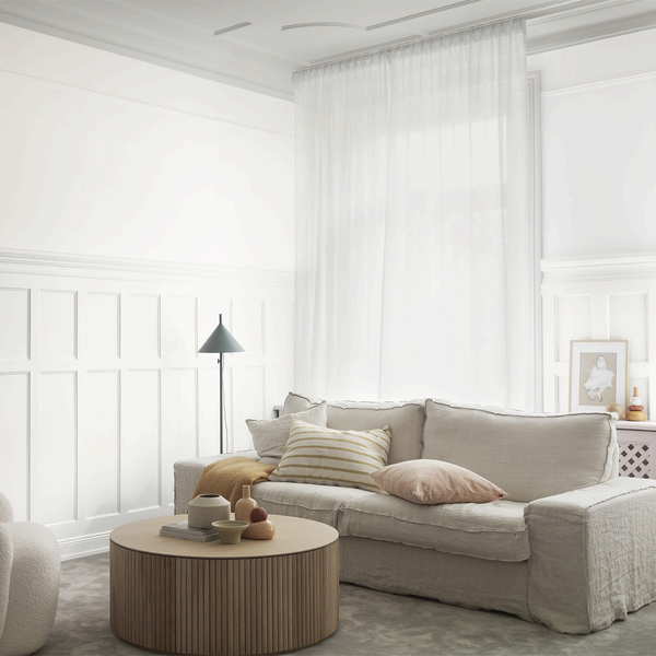 Kalfjäll är en krispig och kall vit kulör som förmedlar en känsla av renhet och fräschör. Den ljusa nyansen ger rummet en ljus och luftig atmosfär, och passar särskilt bra till kritvita toner. Kalfjäll skapar en minimalistisk och modern känsla i rummet och kan användas som bas för att framhäva andra nyanser eller inredningselement.