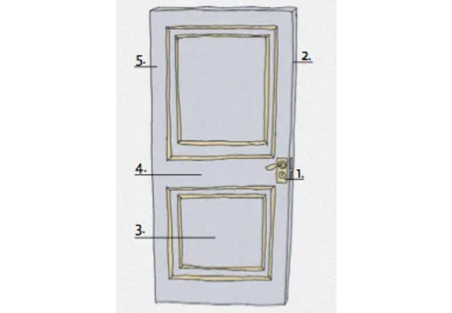 5:5 Sist målar du sidorna på dörren. Låt färgen torka ett dygn. Måla sedan en gång till enligt samma princip som ovan.