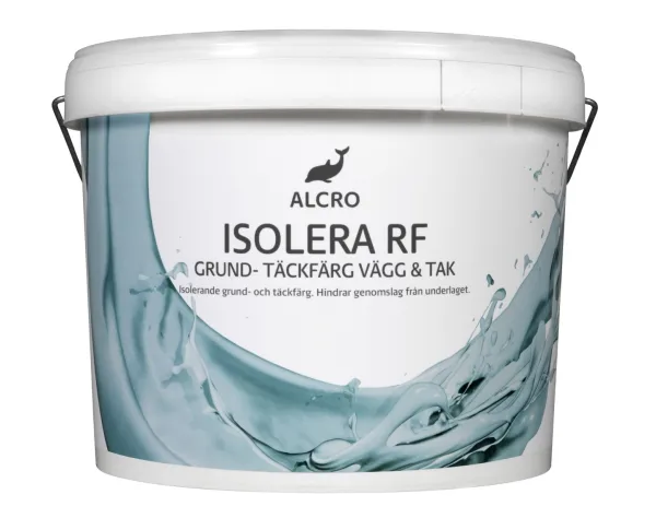 Om taket är mycket missfärgat, smutsigt eller nikotinskadat använd i stället Isolera RF som används som både grund- och täckfärg.
