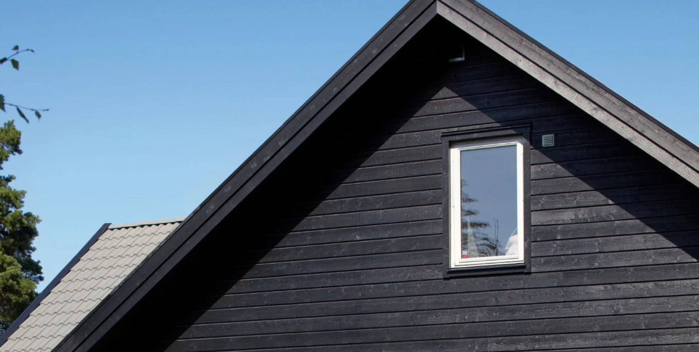 Fasaden är målad i Alcro Arkitekt, en matt svart fasadfärg.