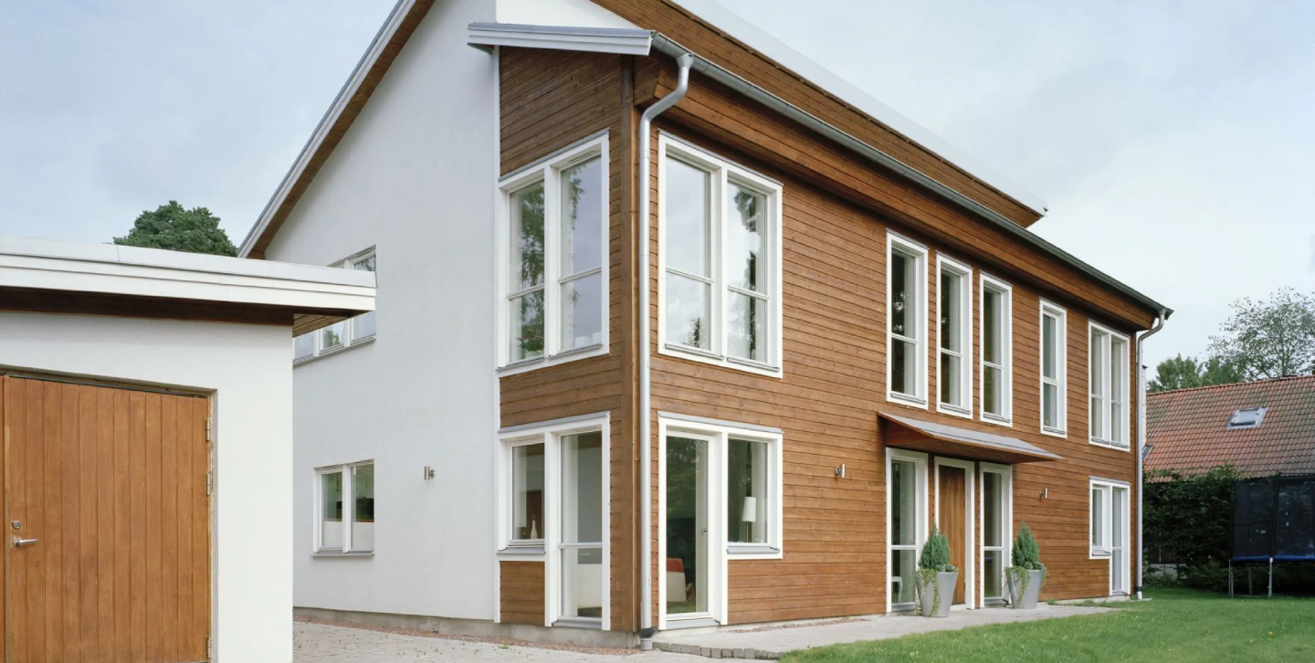 Och exteriören är helt i trä – det finns inga dropplåtar varken ovanför eller under fönstren.