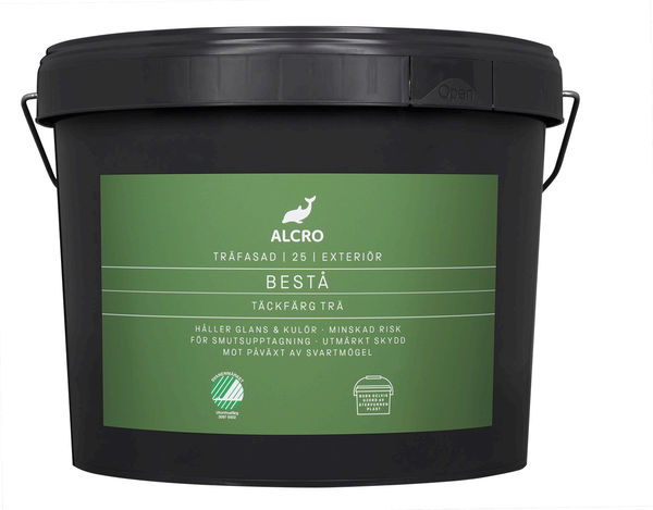 Bestå Täckfärg är en innovativ akrylatfärg för träfasader som är speciellt utvecklad för att din fasad ska se nymålad ut längre. Den har minskad risk för smutsupptagning och håller glans och kulör under lång tid tack vare specialutvecklade bindemedel. Bestå Täckfärg ger ett utmärkt skydd mot påväxt av svartmögel på färgfilmen.