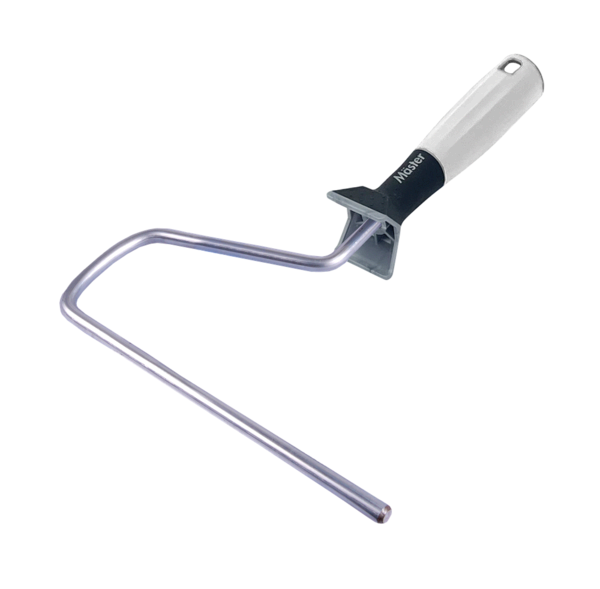 Kraftig rollerbygel i förzinkad 8mm tråd. Passar stickrollers som har en kraftig konstruktion. Ofta för golv och fasadmålning. Kopplingsbart ergonomiskt gummerat handtag.