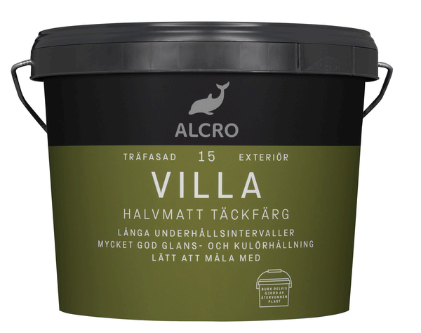 Alcro Villa är en halvmatt och fyllig akrylatfärg avsedd för användning utomhus samt passar för ny- och ommålning av tidigare akrylatmålade fasader. Färgen går också att måla på tidigare alkydfärgsmålade ytor som är grundmålade med Alcro Bestå Grundfärg. Alcro Villa har en mycket god kulör/glanshållning, den håller långa underhållsintervaller, är lätt att måla med och ger ett perfekt slutresultat.