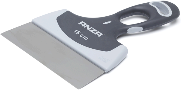 Bredspackel från Anza i rostfritt stål med ergonomiskt, gummerat handtag för ett optimalt grepp som ger ökad kontroll och minskad trötthet i handen.