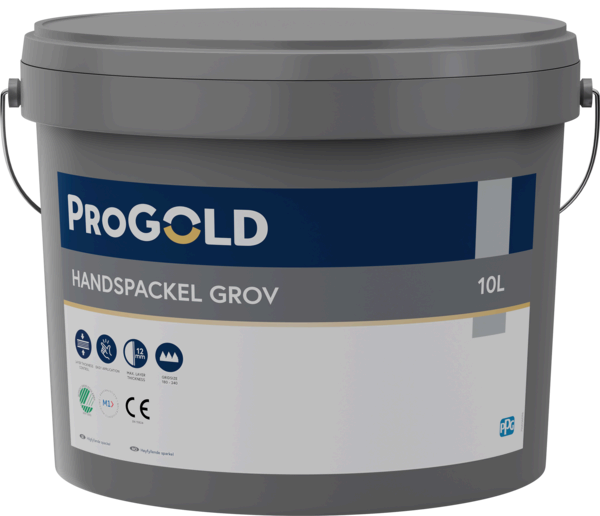 Handspackel Grov är ett högfyllande spackel för användning inomhus. Spacklet är avsett för lagning och spackling i tjocka skikt på puts, betong, lättbetong och skivmaterial. Handspackel Grov har hög fyllnadsförmåga. Spacklet är lätt att applicera och fördela samt bygga tjockare skikt med. Spacklet uppfyller kraven för CE märkning enligt EN 15824.