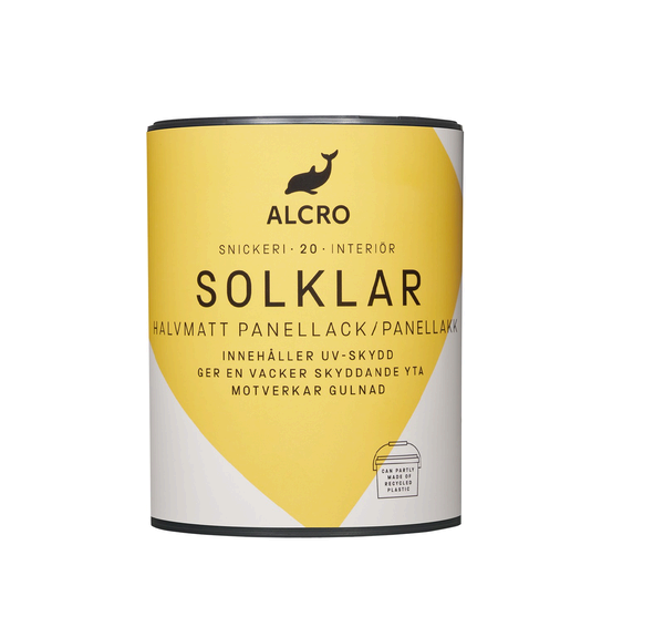 Solklar Halvmatt Panellack är en trälack för träpanel och andra träytor inomhus. Den innehåller UV-skydd som motverkar träets gulnande och skyddar ljusbetsade ytor mot kulörförändringar. Solklar Halvmatt Panellack skyddar träytan mot smuts och gör den lättare att hålla ren samtidigt som den bibehåller träets vackra naturliga utseende.