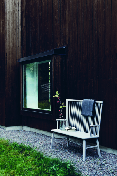En färgpalett med 18 naturnära kulörer för bruna och beige fasader.