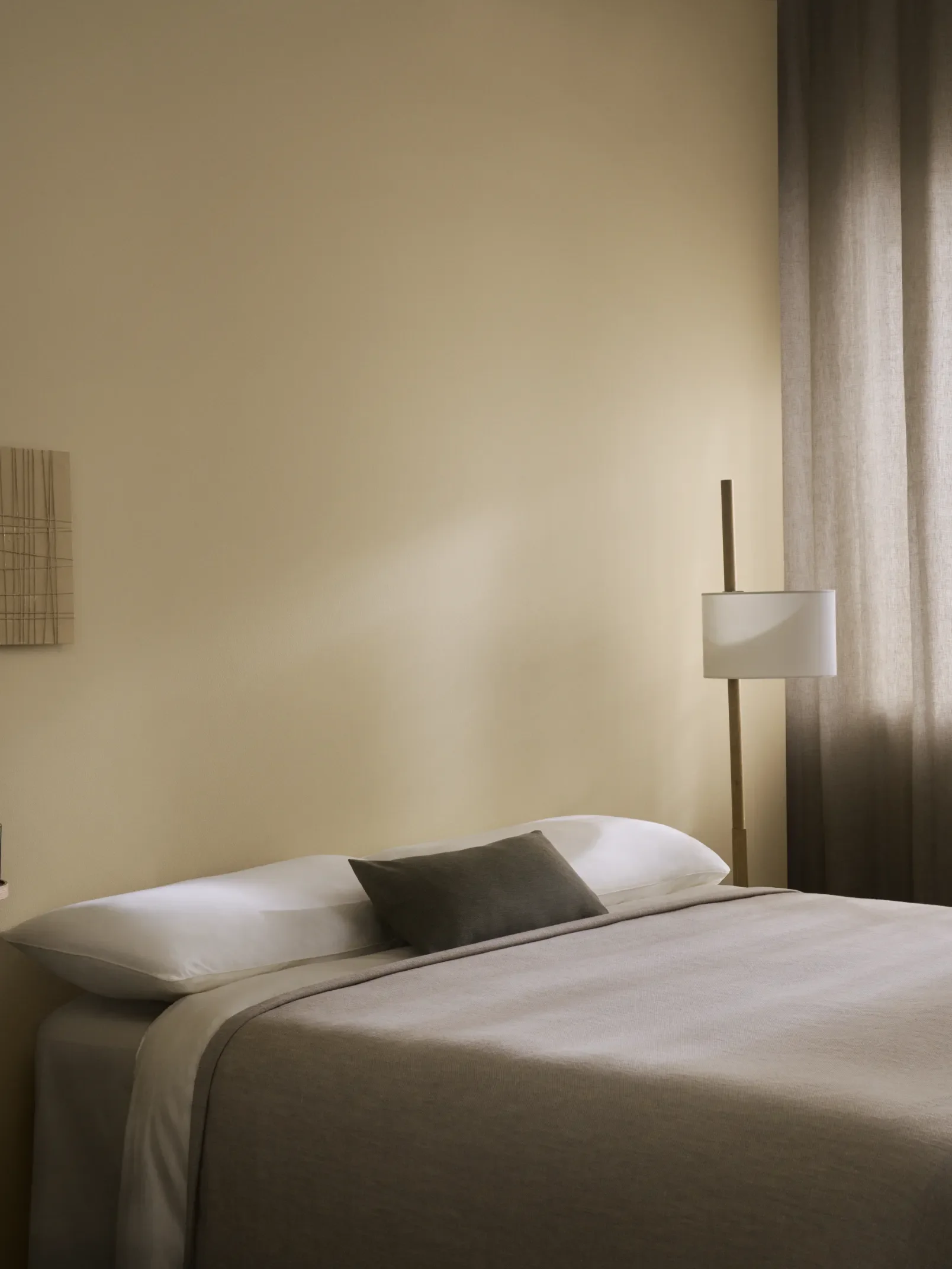 Sovrum används i allmänhet på kvällen. Artificiellt ljus är en viktig faktor att ha i åtanke för hur din färg kommer att se ut efter mörkrets inbrott. Halogenlampor ger ett gulare ljus, vilket gör att de flesta färger ser bra ut, men de kan också få dem att se varmare ut. LED-lampor kan vara svala, så betänk temperaturen på din belysning.